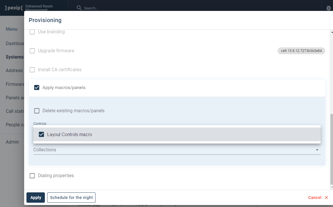 5. To enable the macro on the endpoints with immediate effect select Apply, otherwise select Schedule for the night.