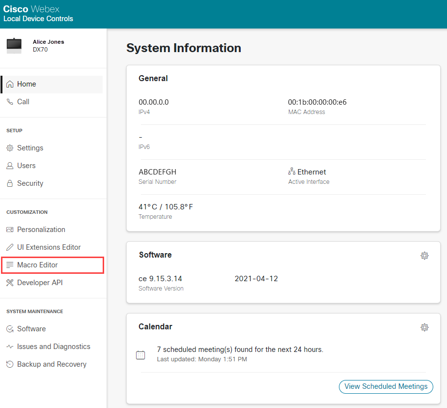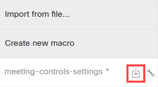 The Meeting Controls feature uses a Meeting Controls macro that is installed on the Cisco endpoint. During the macro installation, you require the macro file and the settings file.. Information on how to access and save these files is given below.