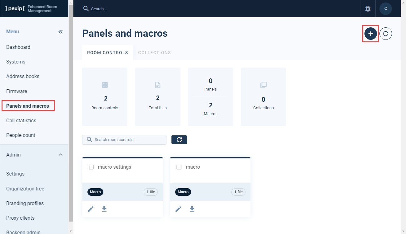 1. Go to Enhanced Room Management > Panels and macros.