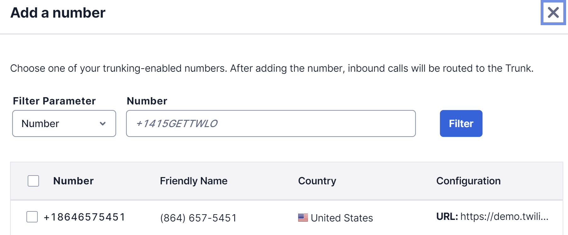 When these steps are complete, your Twilio SIP trunk is ready and you have the information you need to give to your partner.