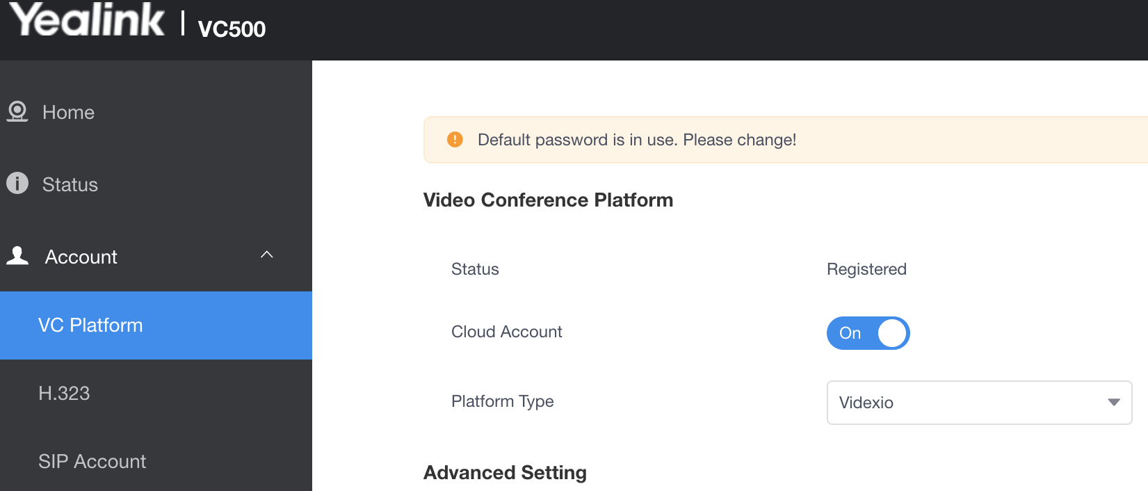 Within a short time the Yealink video conferencing system is set up for use with the Pexip Service.