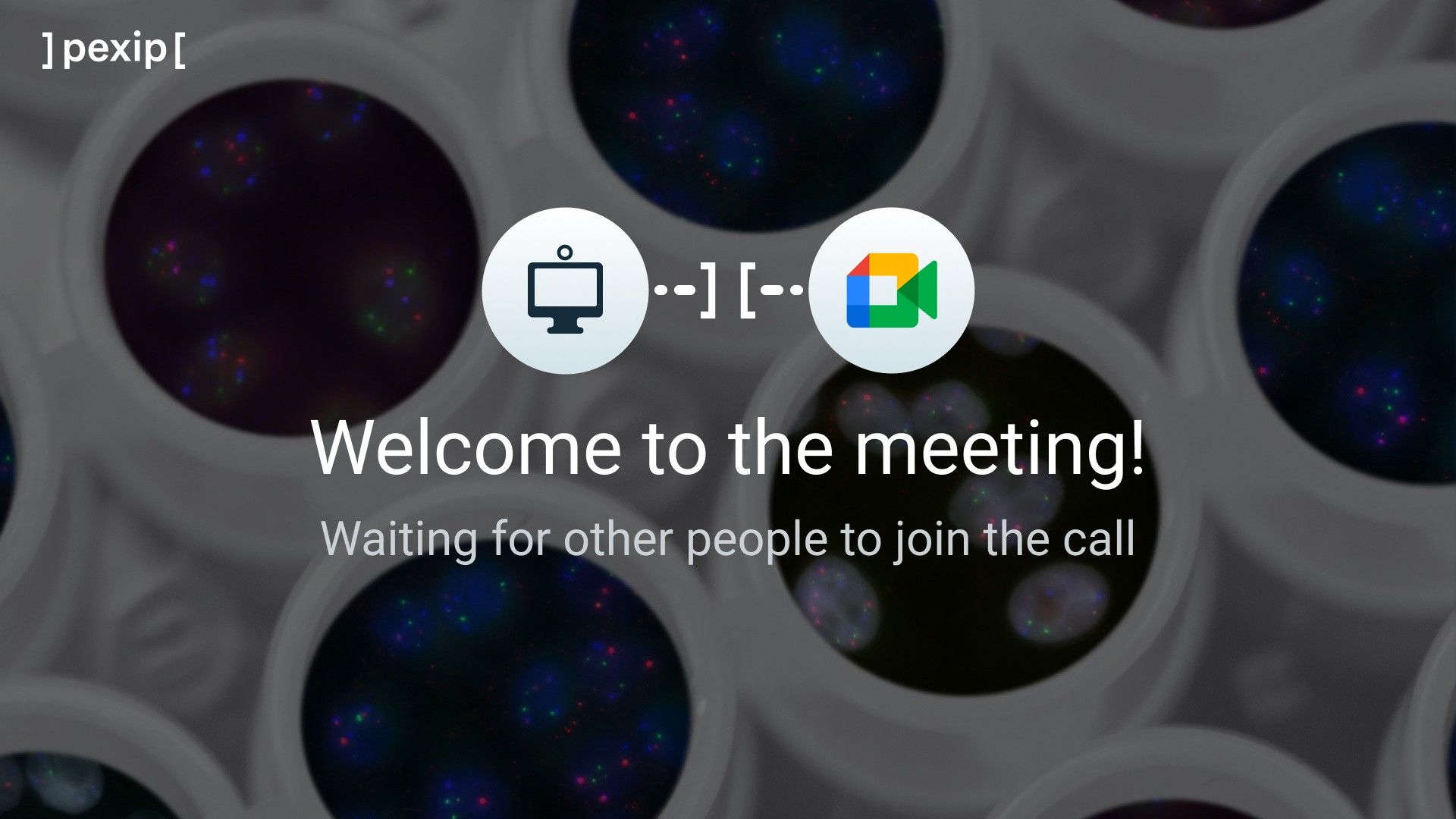 Then Pexip adds a 50-60% dark opacity overlay to highlight the picture instructions and the Pexip logo: