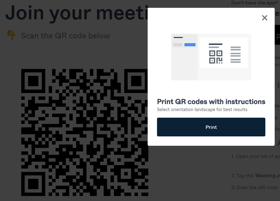 - Make sure that users have downloaded the latest version of the Pexip mobile app. They can then follow the printed instructions to quickly scan the QR code and join the meeting from that video system.