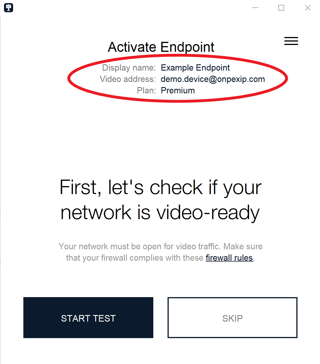 The Activate Endpoint app lets you automatically activate your VTC system and it can also test the suitability of the network environment for registering your endpoint to the Pexip Service. You can use the app on Microsoft Windows or Mac OS X.