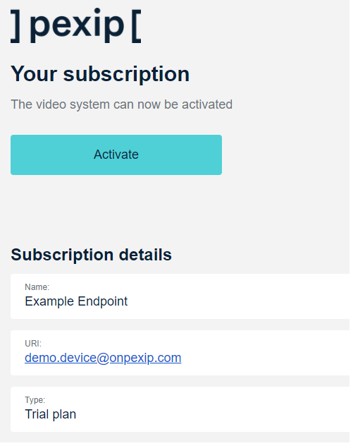 To check which method of activation is supported for your device, see Videoconferencing units compatible with Pexip subscriptions.