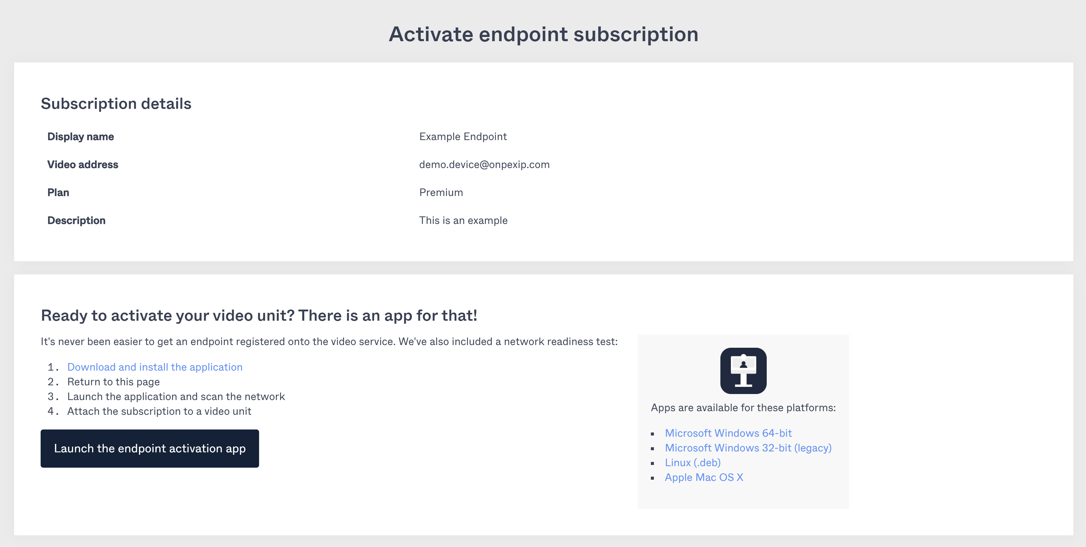 Download and install the Activate Endpoint app from the Pexip downloads page (Microsoft Windows 64-bit and Apple Mac OS versions are available).