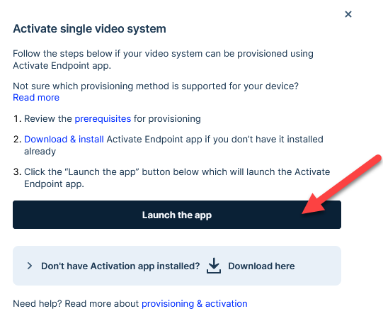 When you are sure that your network is suitable for registering your endpoint to the service, you are ready to activate your device using the app. Please note that during activation, the app loads the necessary configuration settings and certificates (if required) to your endpoint, and sets SIP as the preferred calling protocol. The app disables the H.323 protocol but this can be re-enabled manually through the endpoint's web interface or command line console, if needed.