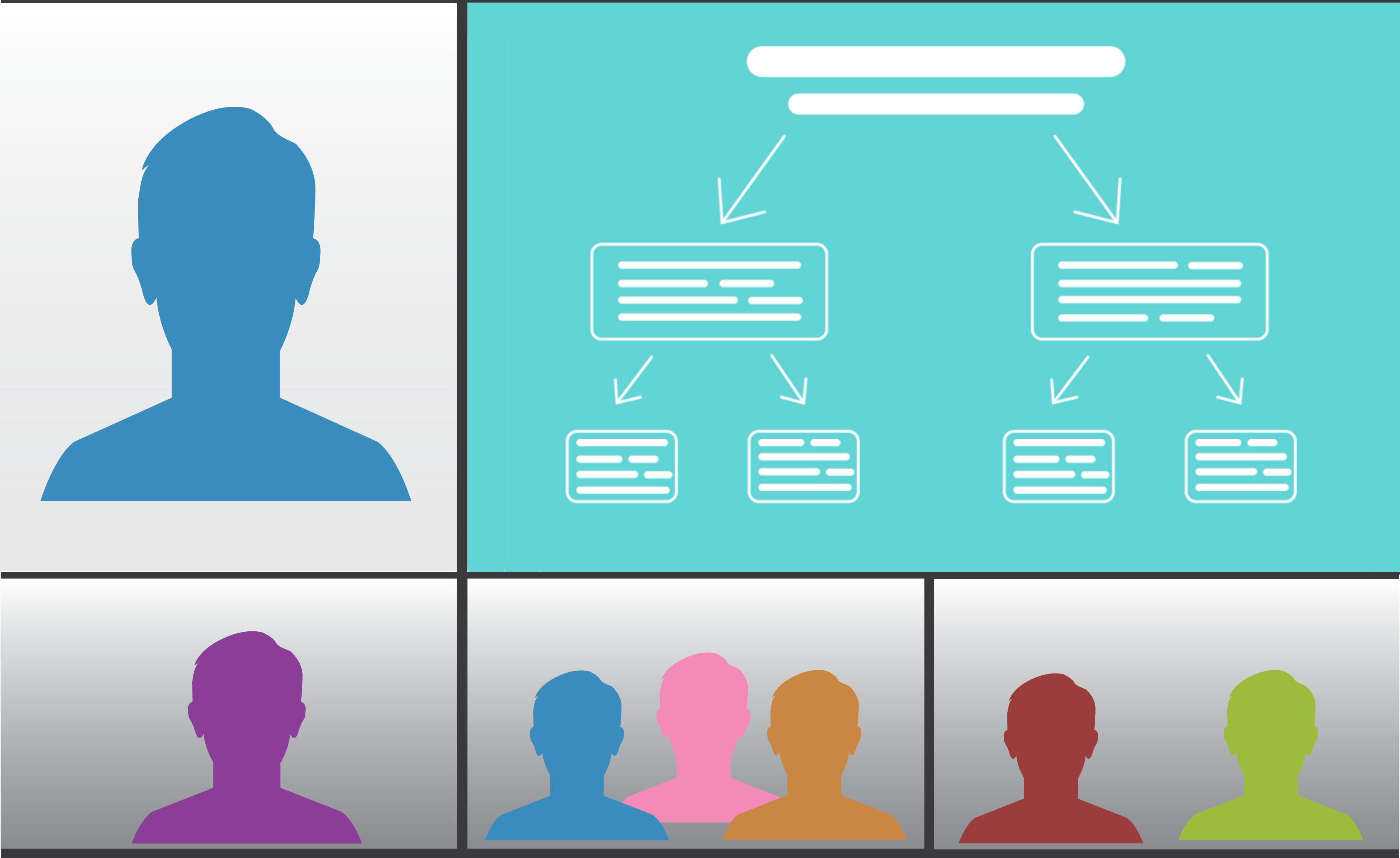 - If the "presenter" is a group of people, then the presentation occupies the entire top row and the presenter group is shown in the bottom row instead, plus up to 8 other participants.