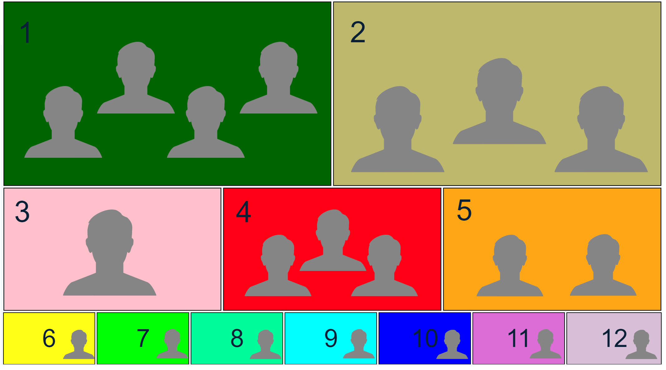 • Layout placement of each participant is based on a combination of face count (number of faces detected within that participant's video feed) and their recent speaking frequency, so as to allocate more space for larger groups of people.