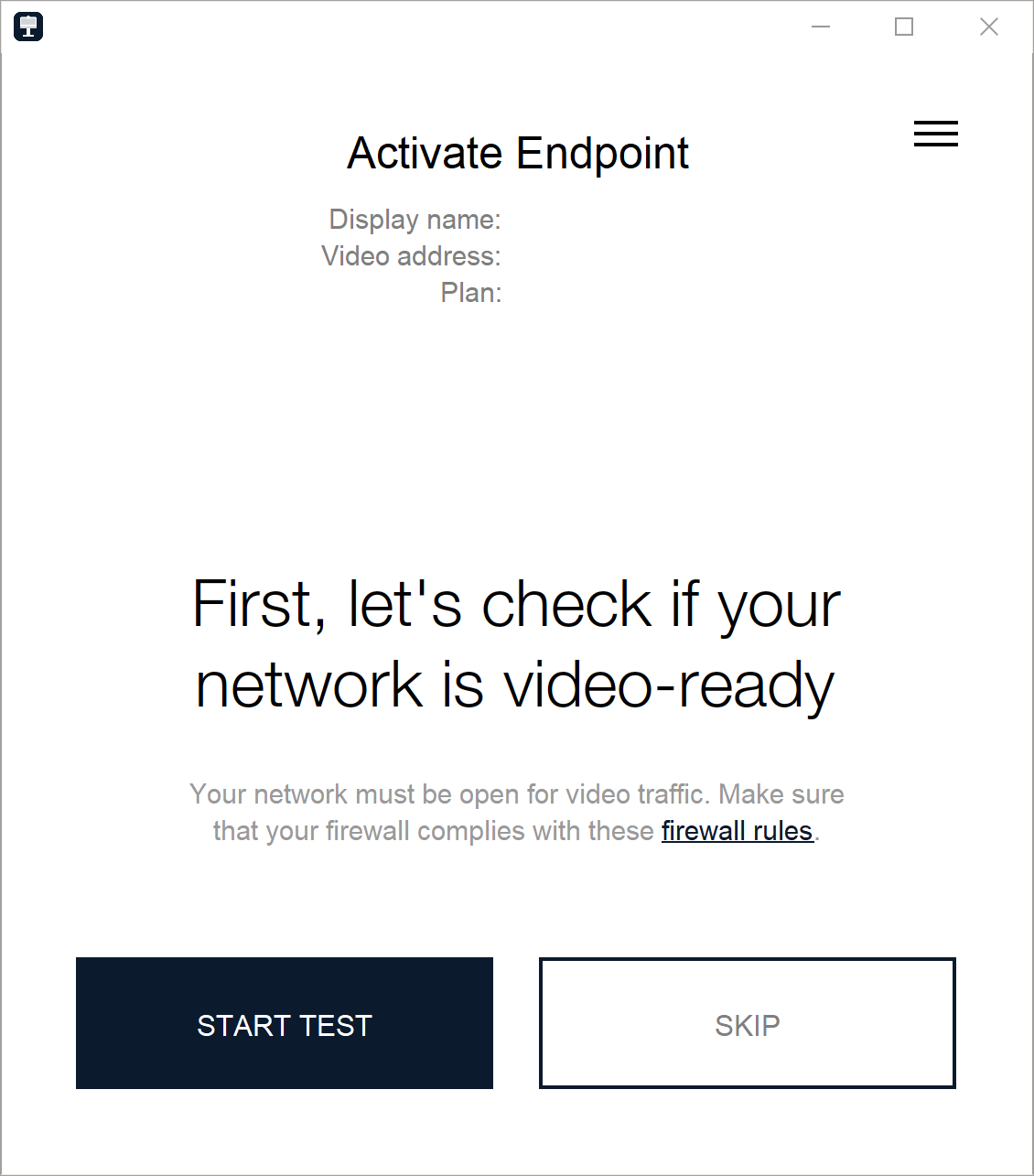 Download and install the Activate Endpoint app from the Pexip downloads page (Microsoft Windows 64-bit and Apple Mac OS versions are available).