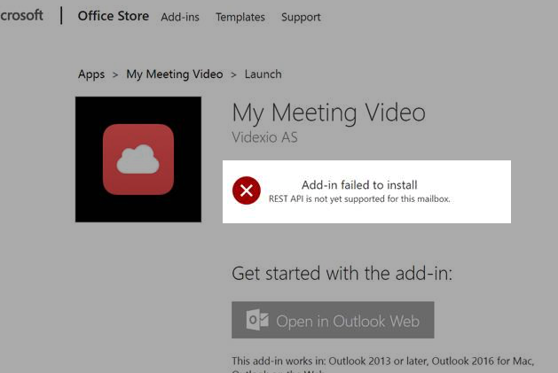 Users attempting to install the add-in get a message: