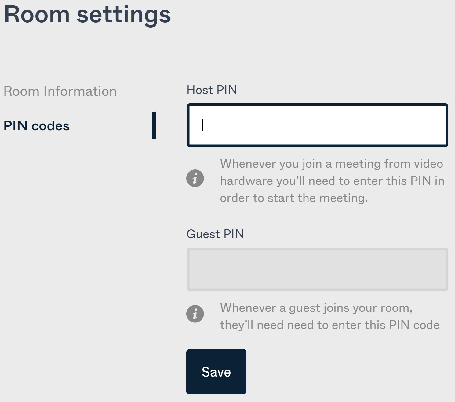 As a personal VMR room owner, you can set PINs to control who can enter your VMR and who can open meetings in your VMR, and you can use either the Pexip desktop app or the Pexip web app for this. Here we cover the Benefits of setting host and guest PINs and How to set PINs, as well as supporting information about Role assignment when joining a Pexip meeting.