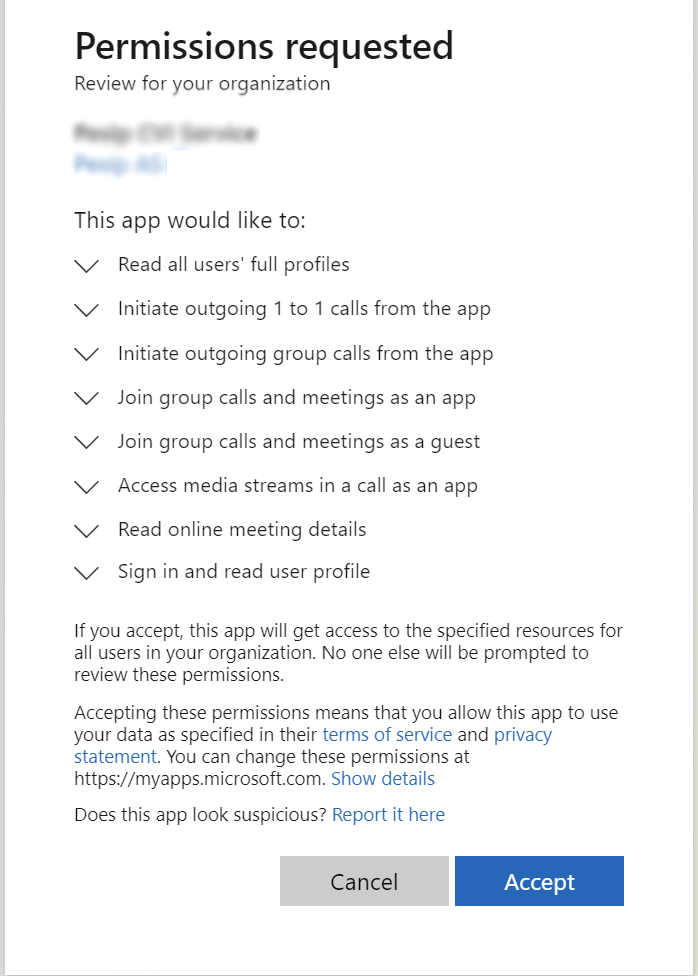 Since support for watermarked Teams meetings was introduced, your calls into Teams will fail if you did not correctly follow the CVI setup instructions — specifically if you did not specify the Pexip CVI app ID when running the PowerShell commands to set up Pexip as your video interop service provider.