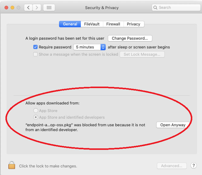 - Go to System Preferences > Security and Privacy > General tab. You see a message that the Activate Endpoint app was blocked.